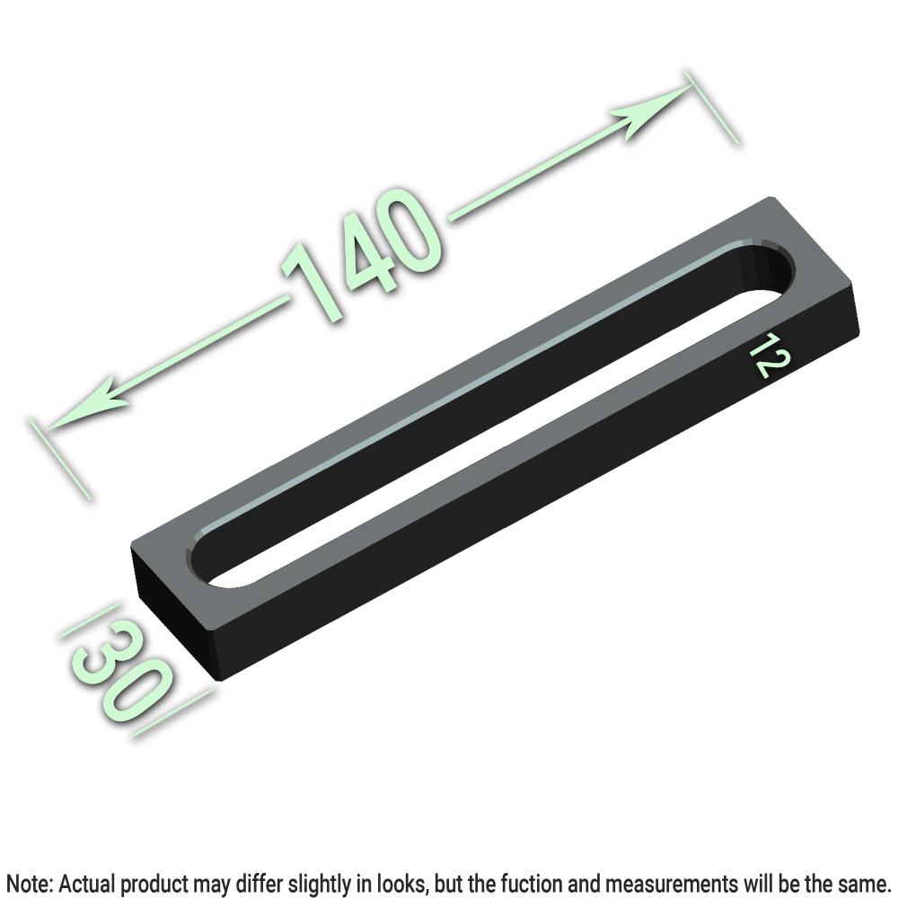 Oblong hole spans across three linear table holes (100mm).